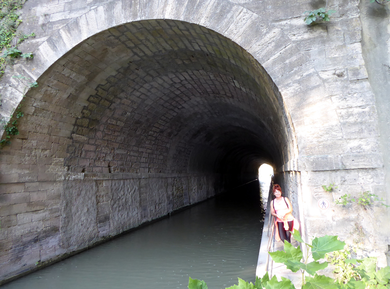 ... final de la primera parte de la etapa en el puente canal de Beziers. Barco con turistas